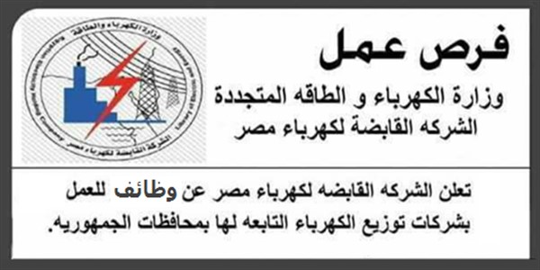 الشركه القابضه لكهرباء مصر تعلن عن وظائف خاليه في جميع المحافظات وذلك للعمل بشركه توزيع الكهرباء.