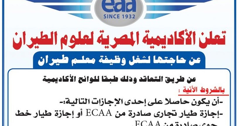 اعلان وظائف الاكاديمية المصرية لعلوم الطيران التقديم لمدة شهر