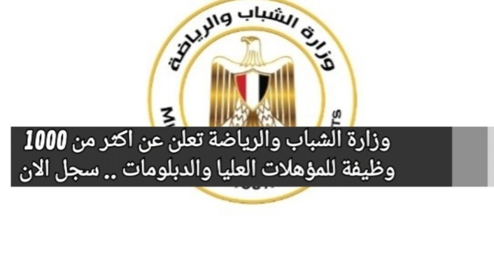 وزارة الشباب والرياضة تعلن عن اكثر من 1000 وظيفة للمؤهلات العليا والدبلومات