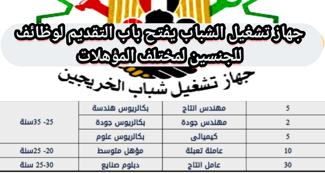 جهاز تشغيل شباب الخريجين يفتح باب التقديم لوظائف للذكور والاناث لمختلف المؤهلات