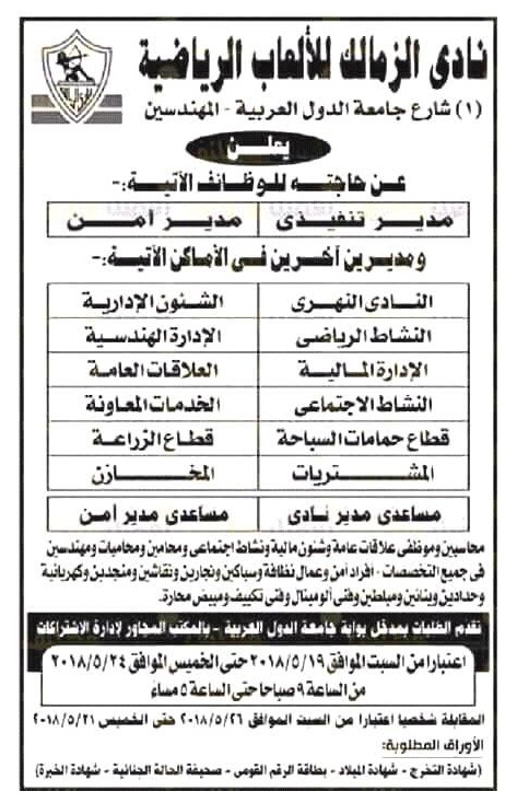 المقابلات الشخصية ستبدأ من 26 / 5 / 2018 حتى 31 / 5 / 2018