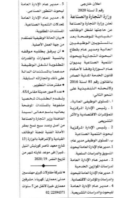 الاعلان الرسمى لوظائف وزارة التجارة والصناعةمنشور بجريدة الاهرام