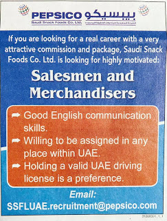 تعلن شركة بيبسيكو PEPSICO ( الشركة السعودية للمأكولات الخفيفة المحدودة ) في الامارات عن حاجتها الي شغل وظائف شاغرة بها كالاتي :