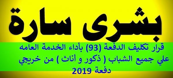 صدور قرار بالتكليف الحكومى لحديثى التخرج من الجنسين التسجيل اول سبتمبر