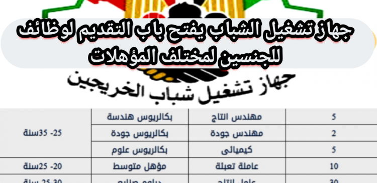 فتح باب التقديم لجهاز تشغيل شباب الخريجين لوظائف لمختلف المؤهلات