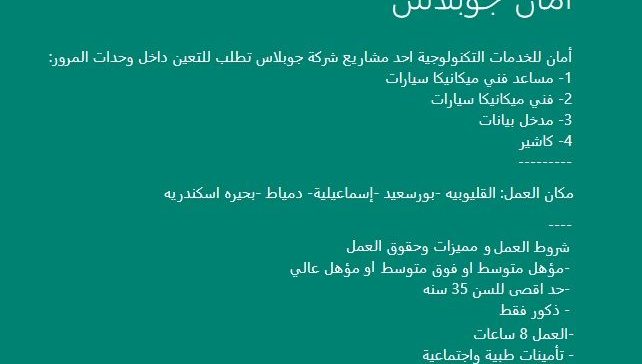شركة أمان جوبلاس للخدمات التكنولوجية تعلن عن وظائف خالية لجميع المؤهلات